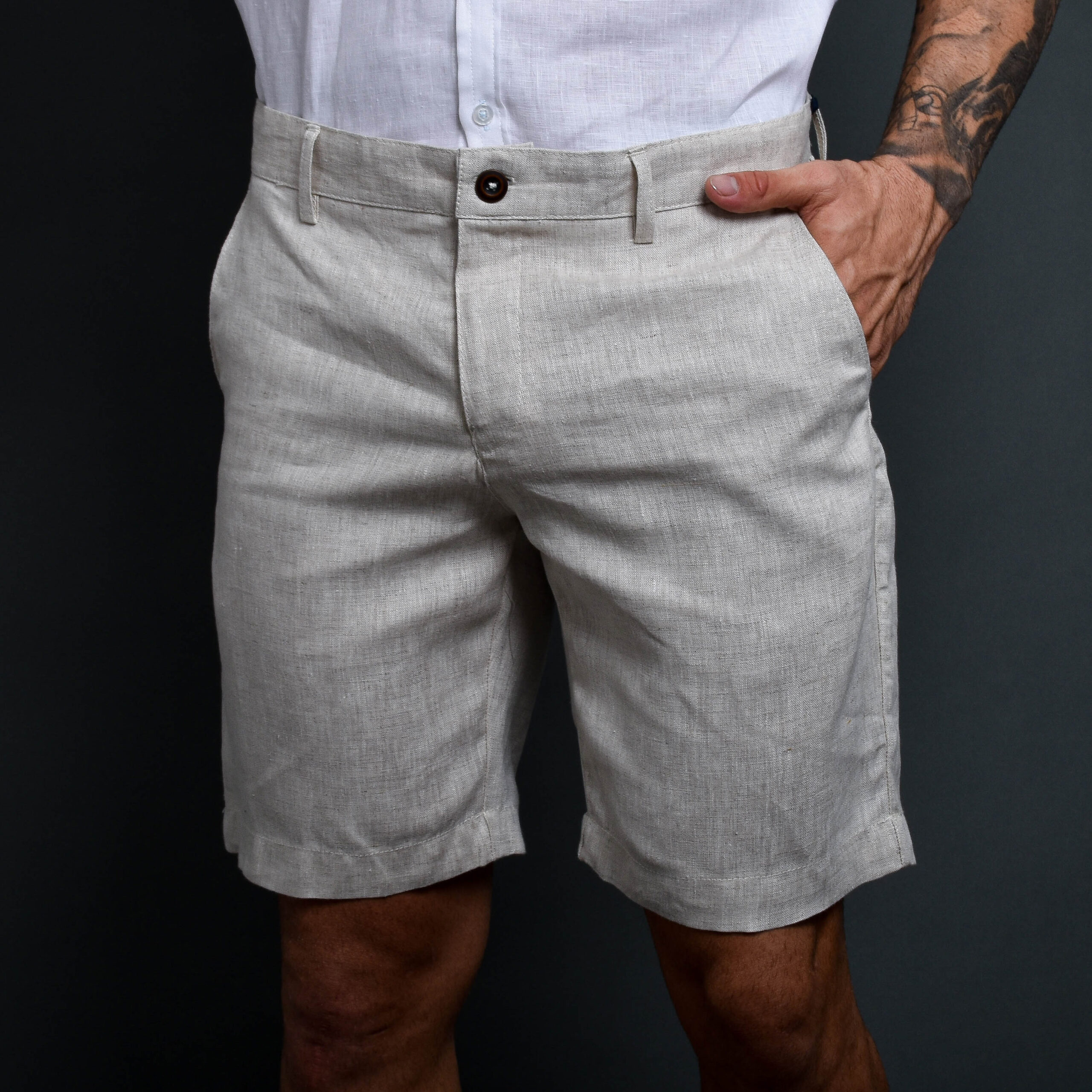 pantalon corto de lino hombre